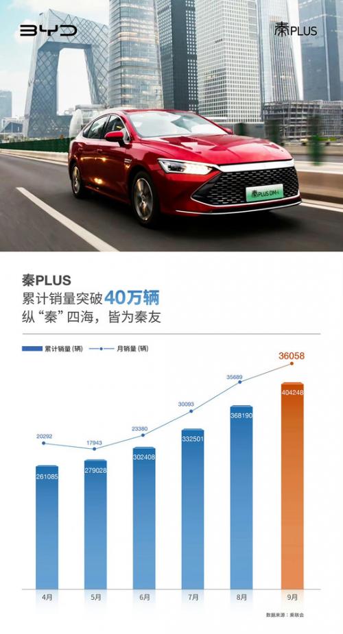 在乘联会最新公布的9月汽车销量数据中,比亚迪秦PLUS(包含DM-i和EV车型)的销量达到了36058辆,击败了日产轩逸(9月销量35926辆)夺得了中国市场A级轿车销量桂冠,要知道后者几乎是近几年一直牢牢霸占着榜单的前几名。比亚迪秦PLUS这次拿到第一名的位置,不仅仅是对于中国品牌,更是新能源车型的一次历史突破。