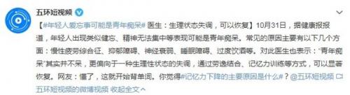 听过有老年痴呆,但青年痴呆你听过吗?11月1日消息,据健康报报道,年轻人出现类似健忘、精神无法集中等表现,可能是青年痴呆。研究称,出现青年痴呆的原因主要有:慢性疲劳综合征、抑郁障碍、神经衰弱、睡眠障碍、过度饮酒等。