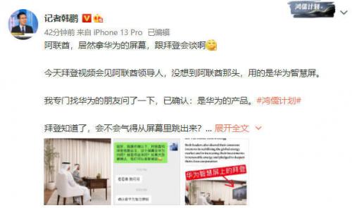 阿联酋和拜登视频会谈用的竟然是华为智慧屏