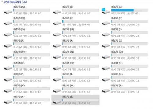 接下来,如果A~Z全部26个字母占用,那就无法再创建分区了。不过特别的是,对于NTFS格式硬盘来说,未分配的空间可以通过文件夹映射方式存在于已经分配的分区下。