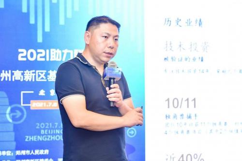 郑州高新区科技金融广场运营公司总经理王春晓就科技金融广场有关情况进行介绍。科技金融广场在高新区管委会的支持下,推出了基金管家、金融服务超市两大服务品牌,成功吸引了深创投、同创伟业、赛领资本、赛伯乐、中国风投等知名机构落户,初步建成了中部地区创投机构集聚高地。截至到2021年6月,科技金融广场已经集聚国内知名基金及基金管理机构106家,管理基金规模达500亿元。累计对外投资83家企业,累计对外投资97亿元,累计直接纳税达2.6亿元。