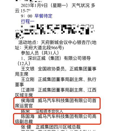 网传出席签约仪式威马高管名单