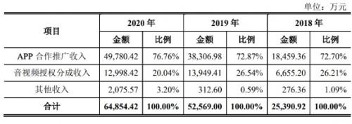 2018-2020年,宝宝巴士APP合作推广收入在报告期内的占比分别为72.70%、72.87%、76.76%,占比均超过七成,且三年来呈现增长趋势。