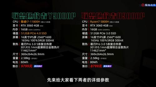 我们特意找来了联想拯救者Y9000P、联想拯救者R9000P,处理器分别是明星级别的酷睿i7-11800H、锐龙7 5800H,除此之外几乎一模一样,显卡都是RTX 3060。