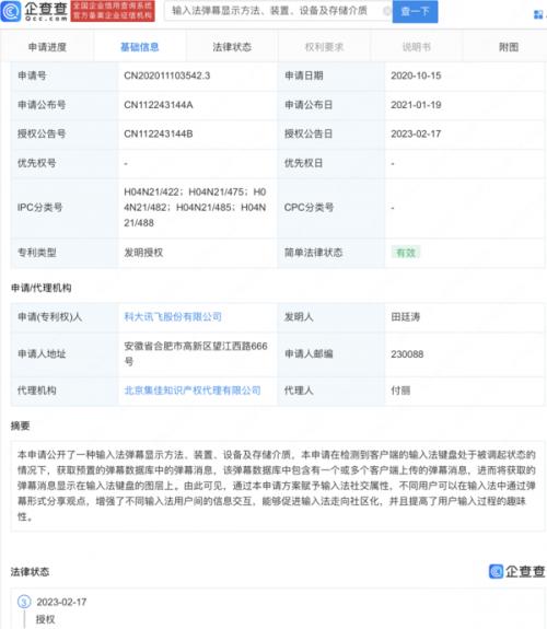 CNMO从相关渠道获悉,近日,科大讯飞“输入法弹幕显示方法、装置、设备及存储介质”专利获授权。从专利摘要来看,该申请在检测到客户端的输入法键盘处于被调起状态的情况下,获取预置的弹幕数据库中的弹幕消息显示在输入法键盘的图层上。
