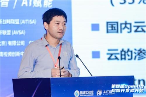 AITISA联盟算力网推进组组长余跃就“中国算力网支撑AI开源生态”的主题展开演讲。他向观众介绍了中国算力网和OpenI启智社区。据悉,2019年,鹏城实验室高文院士勾画出中国算力网的建设蓝图。近年来,启智社区聚焦数据与安全环境等正持续不断发展。余跃尤其提到,希望在网络之间提供一些模拟器,搭建一个协作开发平台,通过开源开放去培育更多的技术可能,为人工智能开发者提供算力普惠。