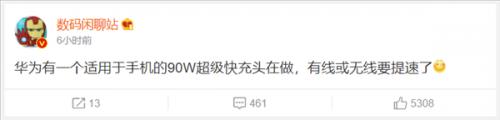据某数码博主@数码闲聊站今日曝料,华为正在研制适用于手机的90W超级快充头,有线或无线的充电速度和效率将进一步升级。