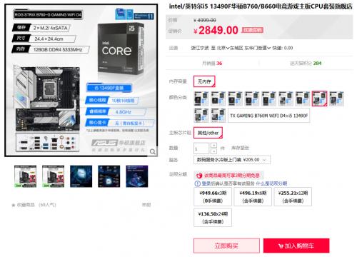 且天猫商城还有华硕B760小吹雪D4主板搭i5-13490F处理器套包,2849元优惠促销中,可享3期免息福利。购买链接:https://detail.tmall.com/item_o.htm?id=700203178468&skuId=5114786082778