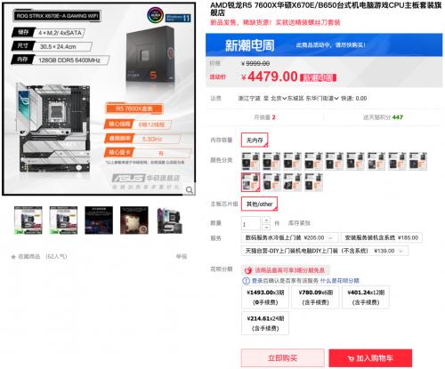 且天猫商城还有华硕X670E吹雪主板搭R7 7600X处理器套包,4479元优惠促销中,买就送精装螺丝刀套装,还可享3期免息福利。购买链接:https://detail.tmall.com/item_o.htm?id=684377685938&skuId=4889788356365