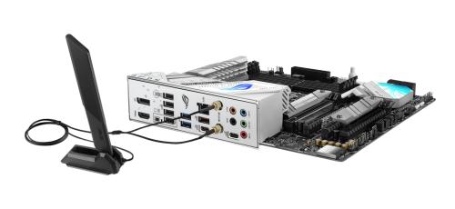 华硕B760小吹雪主板预装了银白一体化I/O背板,拥有丰富的USB接口,包括传输速度高达20Gbps的USB 3.2 Gen 2x2 Type-C接口,支持前置USB 3.2 Gen 2 Type-C接口等,满足玩家同时外接多个设备的需求。板载2.5G有线网卡和WiFi 6E无线网卡,提供疾速网络传输,配合AI智能网络可使玩家在《APEX》等多人竞技游戏中快人一步,夺得胜利!支持蓝牙5.3,可提供低延迟无线设备连接体验,助力玩家打造整机的无线桌面。全新的WiFi天线模块拥有超强磁力底座,4个角度随意平稳放置。