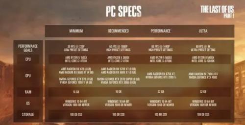 在配置要求方面,索尼称在720P 30帧的情况下,只需要AMD锐龙5 1500X或英特尔酷睿i7-4770K处理器,显卡只需满足AMD Radeon 470或英伟达GeForce GTX 970/1050Ti级别,可以说对老机型已经非常友好了。不过要想获得1080P及以上的游戏画质,还是得使用Radeon RX 5700XT/6600XT或英伟达GeForce RTX 2070S/3060及以上的显卡。而在内存和硬盘容量方面,这款游戏需要16GB及以上内存和100GB的容量。当前游戏已在Steam平台开启预载,需要75GB的硬盘大小。