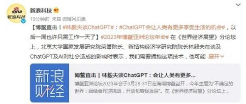 3月28-31日,博鳌亚洲论坛2023年会在海南博鳌召开。在《世界经济展望》分论坛上,北京大学国家发展研究院荣誉院长、新结构经济学研究院院长林毅夫谈及ChatGPT时表示,我们需要拥抱这项技术,它可能让人类有更多享受生活的机会,也许以后我们每周只需要工作一天。