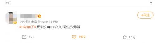 此时“B站崩了”已经冲上微博热搜,网友表示:
