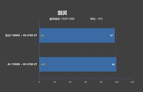 《剑灵》这款游戏优化一般,画面帧率相对依靠处理器单核性能,锐龙7 5800X的帧率为97帧,i9-11900K的帧率为99帧,相差2帧。两款处理器的差距基本体现在对游戏的优化上。