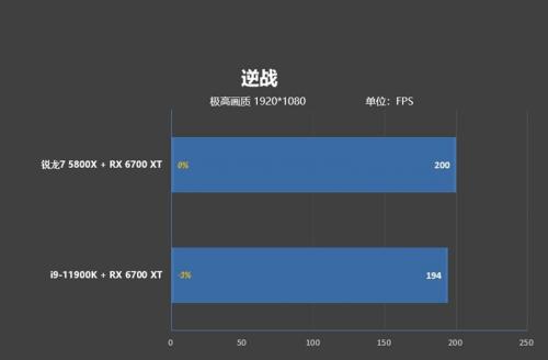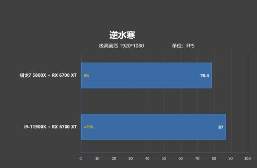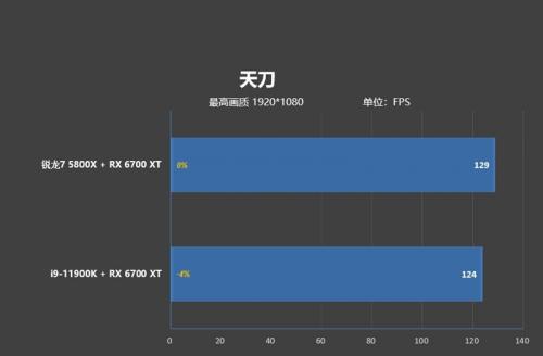 《天刀》作为一款相对依靠显卡的游戏,比较考验显卡和处理器的综合素质,锐龙7 5800X搭配RX 6700 XT的帧率,要稍稍超过i9-11900K与RX 6700 XT的搭配。领先幅度达到了4%。