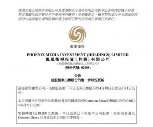 6月22日盘后,凤凰卫视宣布控股股东完成向紫荆文化、信德集团出售37.93%股份,凤凰卫视至此已完成交割程序。