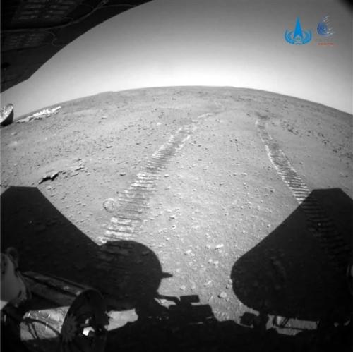 7月12日,“祝融号”火星车在南向巡视探测途中,路过降落伞、背罩组合体附近,利用导航地形相机对组合体进行成像。