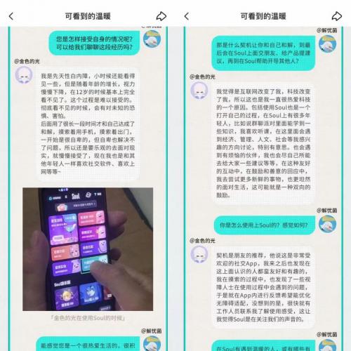 这个看似在文艺作品中才会发生的故事,也同样出现在了现实中。近日,社交平台Soul App举办了一场线上公益活动,邀请视障用户担任“见习解忧师”,与平台用户互动沟通,倾听大家的烦恼,一起走出“困境”。