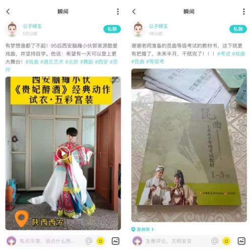 过程中,@公子倾玉也常常遭受质疑声。但这并没有影响他对昆曲的热爱,他日复一日地练习着昆曲表演中的抖袖、碎步、滑步等动作。为进一步学习,他还曾专门从西安前往昆曲发源地苏州求学,并成功通过了昆曲专业考级。