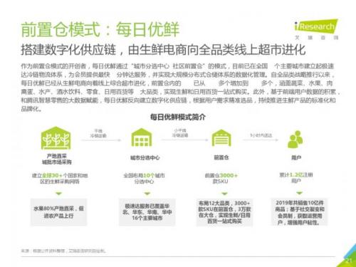 这两家前置仓玩家也带动了行业发展的一波高潮。而我们更多要看到巨头玩家入场,生鲜电商、社区团购、社区电商或者说近场电商模式多样性,市场处于一种复杂的竞争生态。