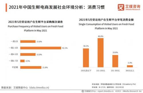 根据艾媒咨询发布的《2021年中国后“疫”时代生鲜电商运行大数据及发展前景研究报告》显示,42.1%的受访用户每周在生鲜平台采购2-3次。
