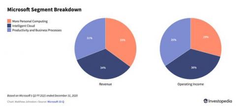 现在的Windows,已经不再是微软的最大营收来源。在销售旺季的去年第四季度,Windows所在的“更多个人计算”部门(Windows、Xbox、Surface等业务)目前的营收占比是35%,与“智慧云”(Azure、SQL服务器、GitHub等云服务)部门营收基本持平。但运营收入的贡献占比却明显低于“智慧云”和“生产力与商业流程”部门(Office、Dynamics和LinkedIn等业务)。