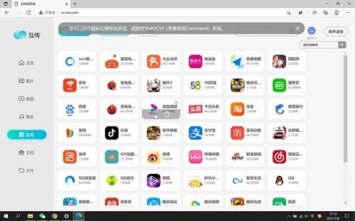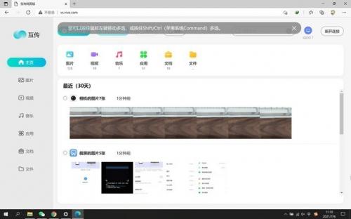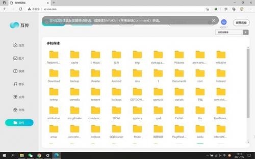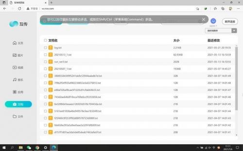vivo互传的浏览器界面支持电脑上传统的多选功能,直接用鼠标右键做“框选”,或者用shift或ctrl键,就能实现文件多选,为批量文件传输做准备。