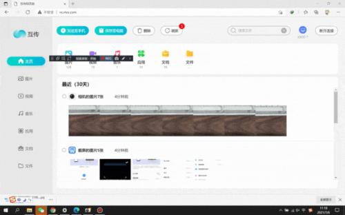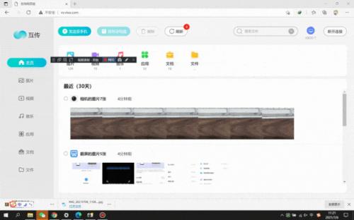 此时电脑的浏览器就变成了“手机文件管理器”,允许我们直接在浏览器上浏览手机上的文件。首页会显示最近的文件,左侧和上侧选栏中支持按不同类别或文件夹结构预览文件的方式。