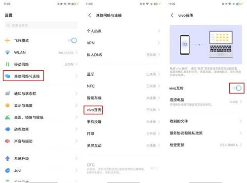 今天我们要聊的工具是“vivo互传”,在vivo和iQOO手机上都能被找到。进入设置界面,找到并点击“其它网络与连接”,然后我们就能看到“vivo互传”了。
