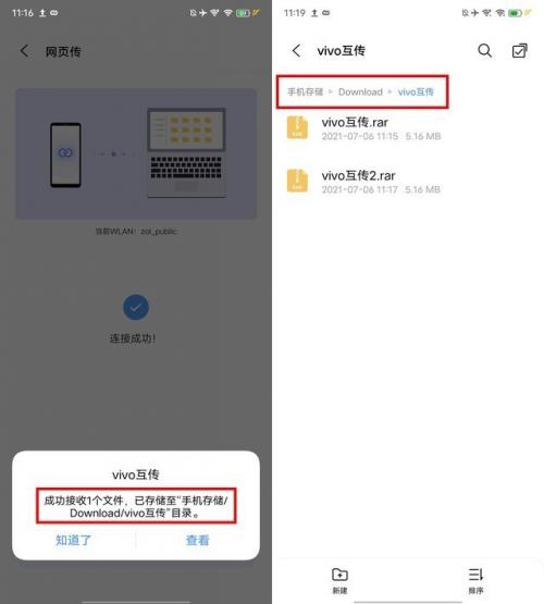 传输完手机会有提示,可以让大家快速打开手机上的传输接收文件夹。