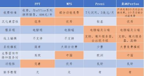 目前,国内演示软件市场呈现出三分天下的局面,PPT、WPS、Prezi三者各有所长。因为推出时间较早和使用习惯等原因,PPT和WPS的用户较多。