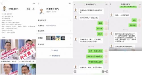 这在视频号中不是个例,认证信息为“健康博主”的“肝病医生田飞”日常讲解与肝病相关的知识,在用户通过介绍页添加微信(肝病医生田飞)后却被提示引导到线下诊所看病。田医生助理向该网友介绍,患者通过物理分子治疗仪治疗肝硬化,将大量的药物直接有效的透皮深入肝脏,药物可直达肝区,最终达到对肝脏进行软化的效果。此外,还特别提示治愈率高达70-80%,且疗程短见效快。