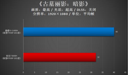 两款笔记本都开启独显直连模式和野兽模式后,在《赛博朋克2077》、《光明记忆:无限》《古墓丽影:暗影》等15款游戏中,搭载酷睿i5-11400H的Y7000P在平均帧数上赢了11款游戏,平了2款游戏,输了2款游戏。这一轮,i5代表英特尔H45系列再次战胜r7。