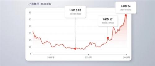 我松了一口气,时隔两年,终于可以抬头挺胸、重新做人了!接着,小米股价一路高歌,到了2021年1月4日,收盘价34块港币。让IPO投资者赚一倍,当初吹的牛,我们终于兑现了!"破发"给我造成的心理阴影也终于烟消云散。
