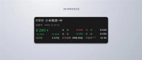 正当我们踌躇满志的时候,中美贸易战升级,小米股票开始了一路跌跌不休。就这样,跌了一年多,到了2019年9月,一路跌到8.28港币。所有人的信心都几乎崩盘了,甚至还有人认为会跌到4块港币。