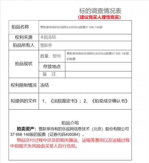 此外,同时被拍卖的还有其哥哥贾跃民持有的乐视网总计2000万股的股票。