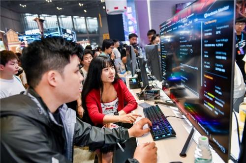 7月13日下午14点至16点,普普通通Tony大叔和极客湾Geekerwan-飘哥一起空降此区。限时合影互动,指引现场玩家液氮超频挑战,参与挑战的玩家接踵而至,超频排行榜单也是一再刷新,场面十分热闹。
