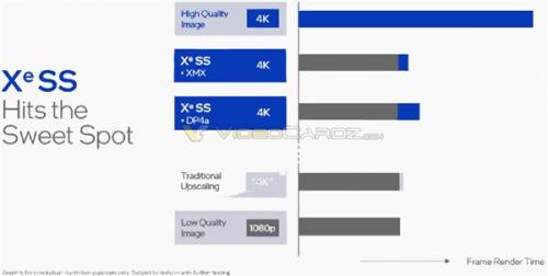 Intel表示,XeSS的帧渲染时间会高于传统缩放算法,但远远低于渲染原生4K画面所需时间。