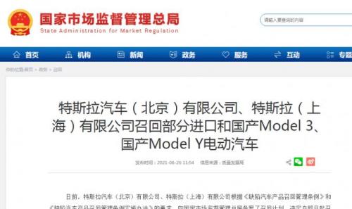 6月26日,据国家市场监管总局消息,日前特斯拉汽车(北京)有限公司、特斯拉(上海)有限公司向国家市场监督管理总局备案了召回计划,共涉及285,520辆进口Model 3及国产Model3、Model Y。