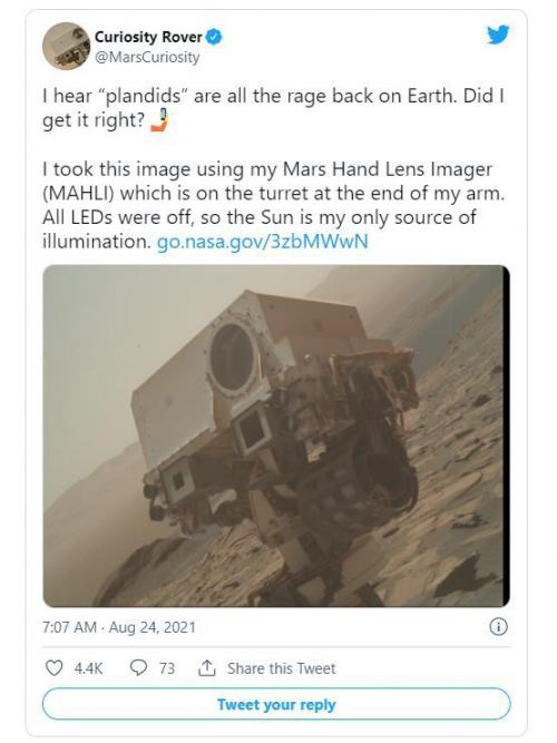 据外媒CNET报道,美国宇航局(NASA)的“好奇号”火星车正在(晚了几年)加入Instagram的“Plandid”趋势。一个成功的“Plandid”的一个关键要求是不要盯着相机看。它必须看起来很随意,就像人们没有意识到快照的存在。