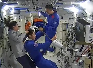 网上一段拍摄于10月31日下午的空间站视频引发网友关注,内容是翟志刚和王亚平为叶光富理发。