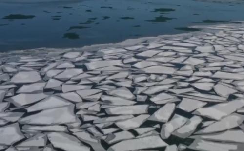 同时,变薄的冰层在越来越暖的气温下,逐渐膨胀,原本就极脆弱的冰层在强大的内应力作用下开始断裂,形成长短深浅不一、纵横交错的裂缝。这些裂缝再度发展,就形成一块块的不规则冰块。