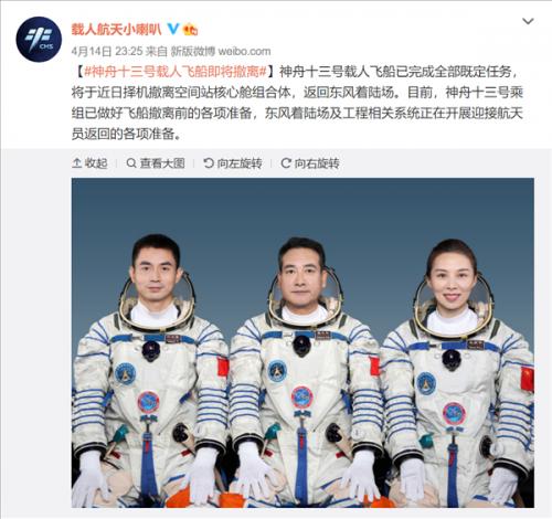 据中国载人航天工程办公室最新消息,神舟十三号载人飞船已完成全部既定任务,将于近日择机撤离空间站核心舱组合体,返回东风着陆场。目前,神舟十三号乘组已做好飞船撤离前的各项准备,东风着陆场及工程相关系统正在开展迎接航天员返回的各项准备。