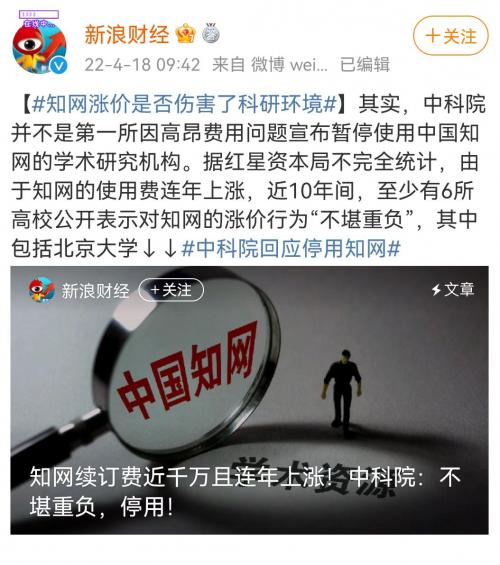 近日,在中科院停用知网一事冲上热搜之后,人们也在社群开始了热议。