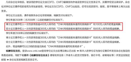 而在两年前,也有文章写到:在中国知网,有一份喊硕士研究生和博士研究生领稿费的通知。