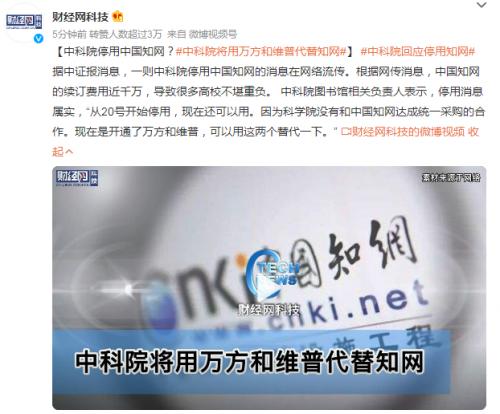 4月18日,#中科院停用知网##中科院将用万方和维普代替知网#的消息冲上热搜,引发热议。
