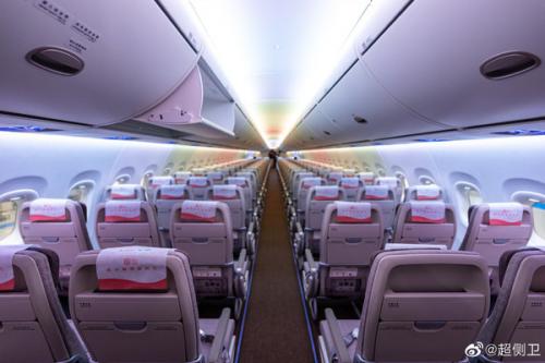 有博主上机做过简单的测试,C919经济舱的座椅距离腿部大概有两拳多的空间,基本够用。温馨提示乘客,这款飞机经济舱座位号为39和40的两排座椅由于处在应急通道上,所以空间比其它座椅更加宽敞,估计这两排座椅以后会有很多人买票。