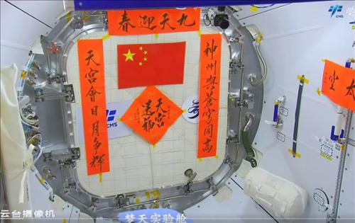 就连梦天实验舱,也贴上了传统春联,节日气氛浓厚。