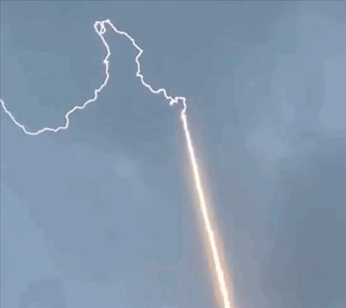 从视频中来看,一支飞天金属导体,一跃而上冲上云霄,随后被雷电击中,闪电沿着导体传输到地面,整个画面非常震撼,像是施展魔法一般。