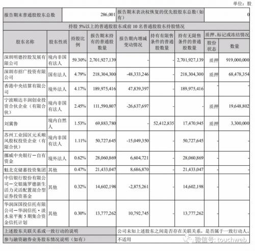 截至2021年3月31日,深圳明德控股发展有限公司持股为59.3%,深圳市招广投资有限公司持股为5.85%,香港中央结算有限公司持股为4.19%,宁波顺达丰润创业投资合伙企业(有限合伙)持股为2.87%;